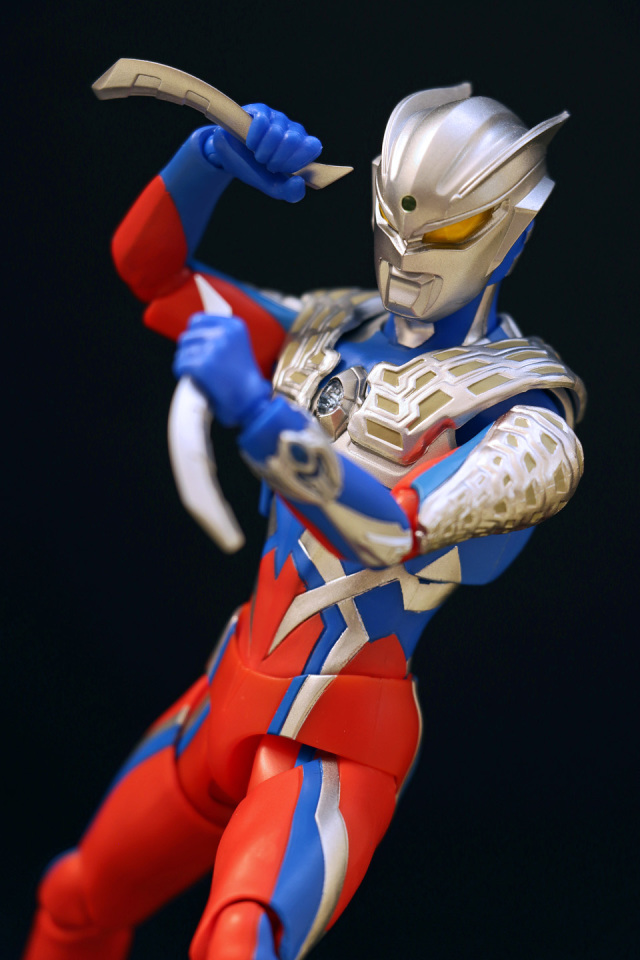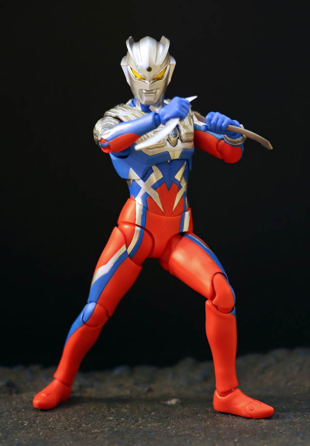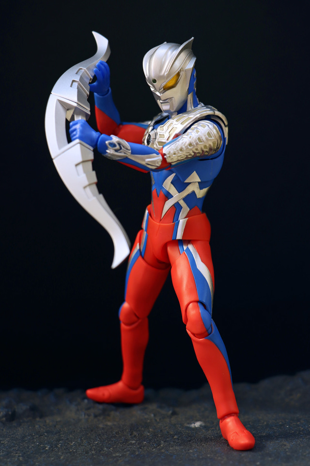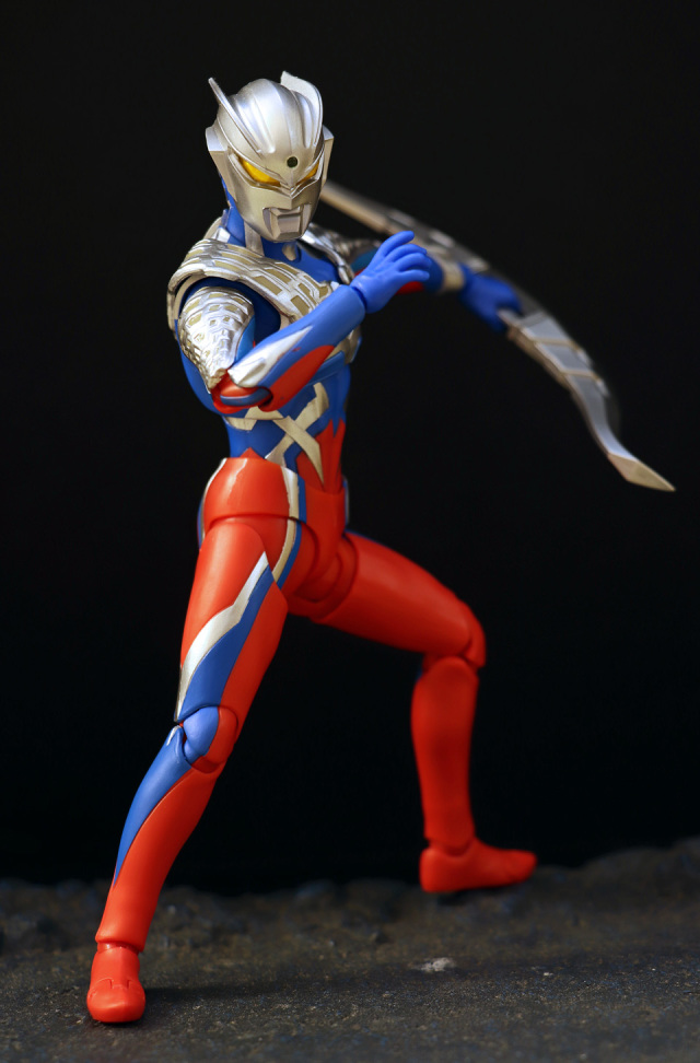 一個大人氣的角色。本體全高約 150mm,附有交換用左腕部、交換用造型手左 5 種右 6 種、心口紅/藍能量顯示燈、ZERO 頭鏢 X 2、ZERO 斧刃以及替換用頭雕等配件,故可玩性不俗。主色以銀色、藍色及紅色為主!藍色及紅色為未上色膠料,猶幸外觀上不算太 "膠"。