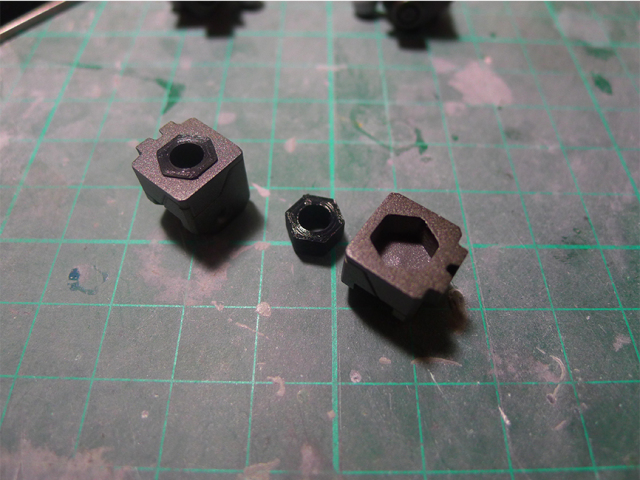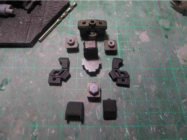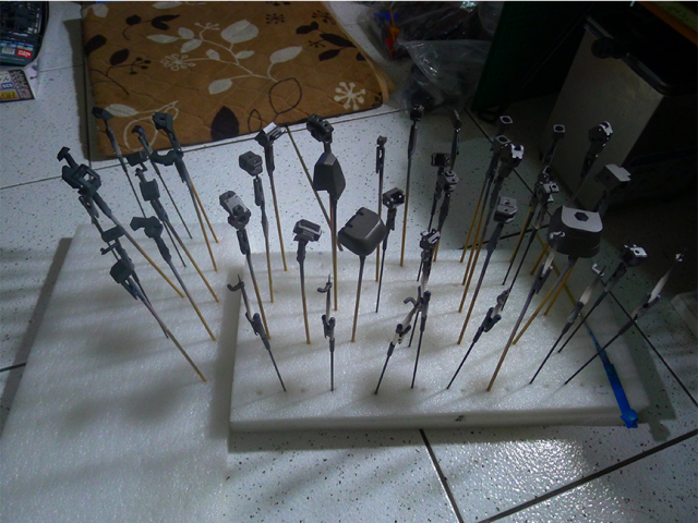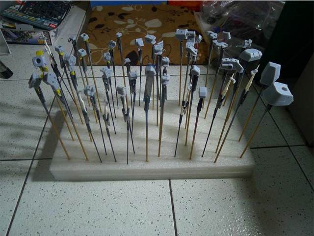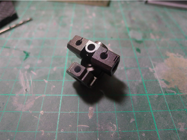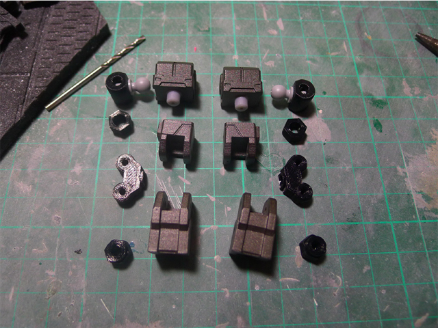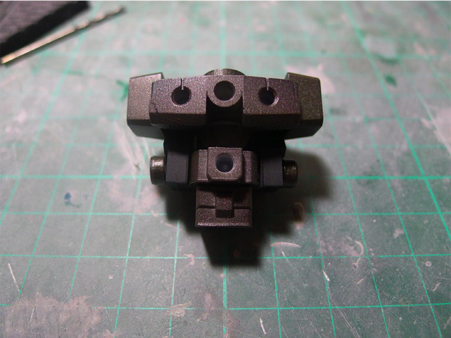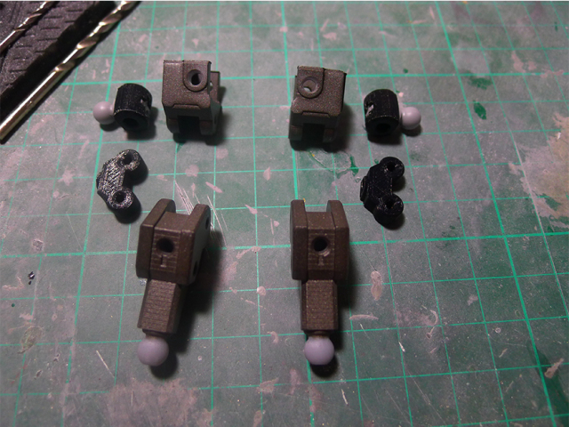 因為3D列印的材料性質偏脆的關係,因此不適合作像是一般組裝模型的對接卡榫或是軸孔配合,當然從列印的層面來說,是可以列印的出來的,但是在組裝的過程中會很容易就斷裂,因此在每個零件的連接上都是用實心塑膠棒或是黃銅棒作連接,這樣在組裝過程中不僅不易斷裂,同時在成品擺出姿勢時,保持力及強度也相對提高不少;