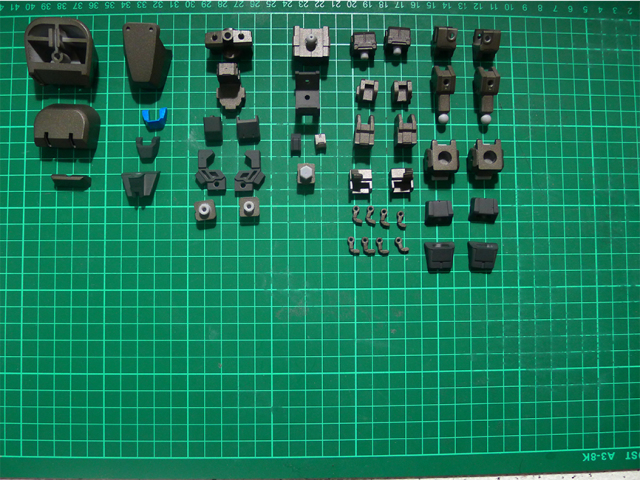 這個自製模型是以光固化3D列印的方式製作,光固化的列印過程大概有這三個步驟:列印-->清潔-->光照,經過最後的一個光照之後,就可以得到最終可以使用的模型了。上面的圖片就是這次【Basic Style】要使用到的零件;