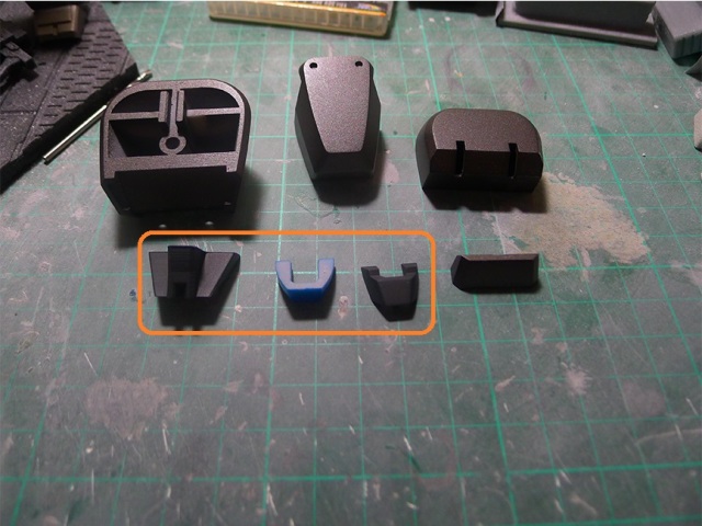 首先是頭部組裝的部分,圖中橘色框框的部分是為了後續製作的方便,特別將眼睛作出獨立分件;