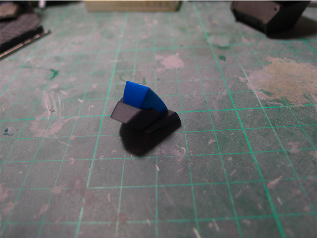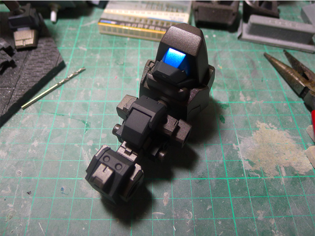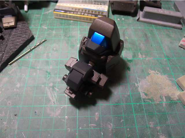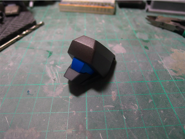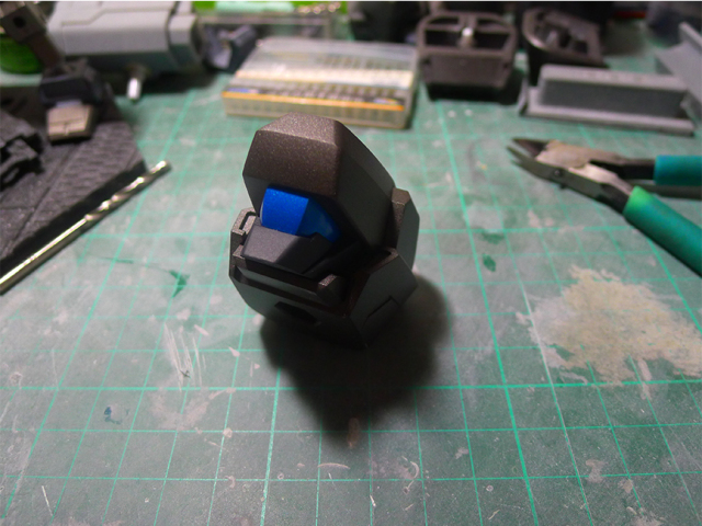 這裡就是剛才所提到的,為了後續的製作及上色,所以將眼睛的部分作成獨立零件,眼睛的上色是採用噴罐的【TS-54】金屬藍;