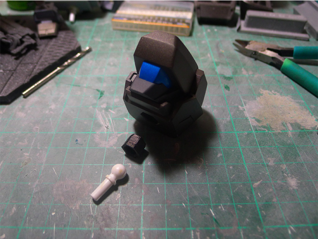 頭部組裝完成的狀態,關節的部分採用3D列印的軟膠球窩關節搭配市售的球頭關節;