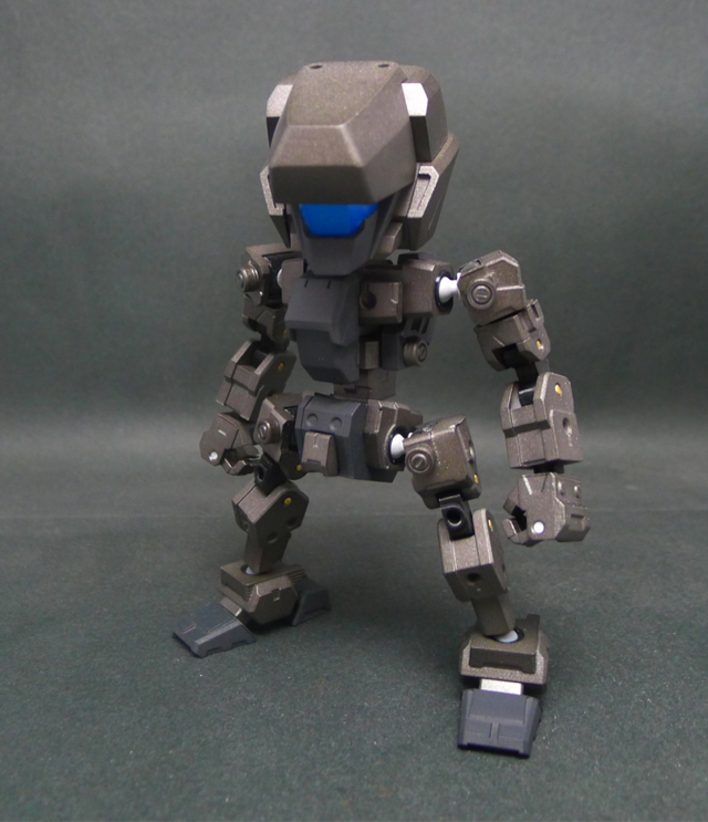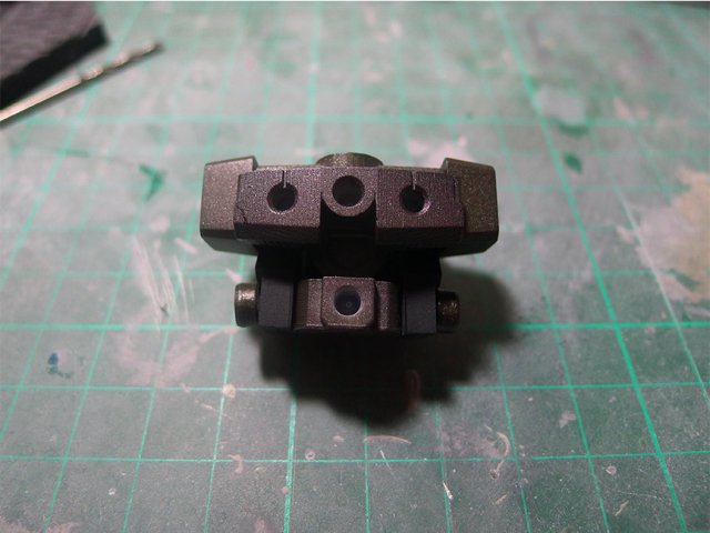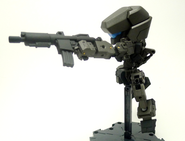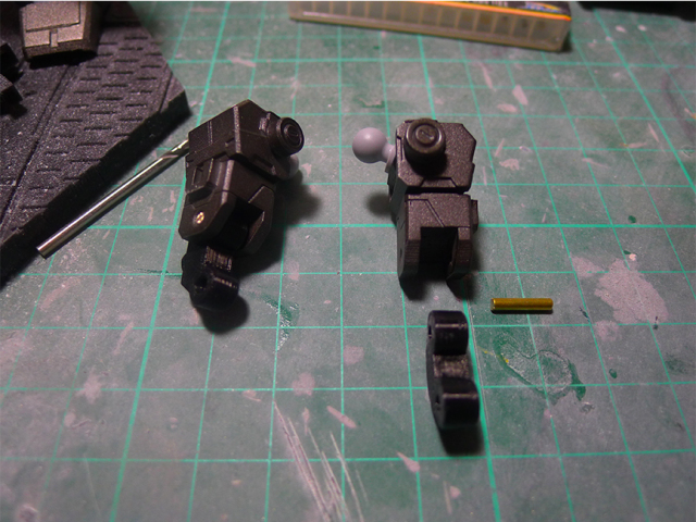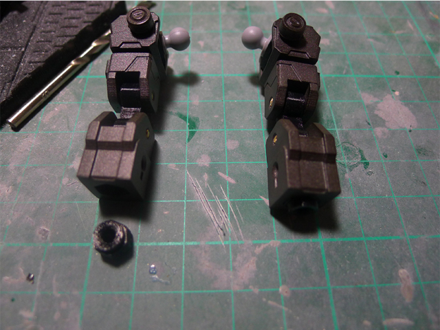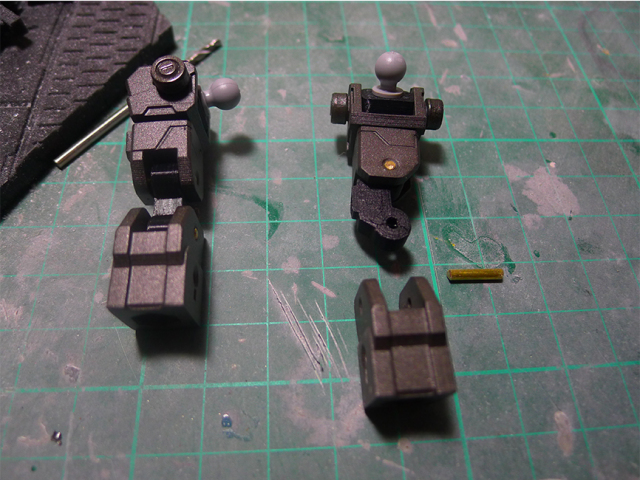 腿部的組奘,同樣為了可動性的考量,大腿與腰部的連接部分採用與肩膀相同的關節,膝蓋與手肘的關節則是同一零件;
