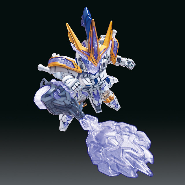而全新的SD鋼彈《三國創傑傳》鋼普拉系列也應用了 HOBBY 事業部培育的最新技術更加強化。以「劉備獨角獸鋼彈」來說,全身的分件更加精細並大量使用透明零件,不須貼上大量補色貼紙就能再現帥氣的武將。在軀幹部份使用了雙重關節加強動作性,各個武將的特色武裝更能進行合體,再現劇中的必殺技,像是劉備獨角獸鋼彈、張飛神鋼彈與關羽ν鋼彈的合體必殺技「蒼炎激龍破」。