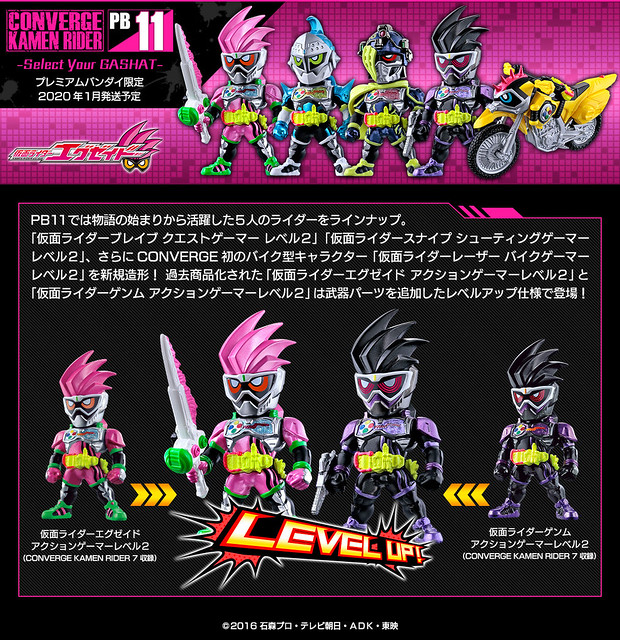 此次將以《假面騎士EX-AID》為題材來收錄有「假面騎士EX-AID 動作遊戲玩家 Lv.2」、「假面騎士Brave 冒險玩家 Lv.2」、「假面騎士Snipe 射擊玩家Lv.2」、「假面騎士Lazer 劍擊機車玩家Lv.2」與「假面騎士Genm 動作玩家 Lv.2」等等五款不同種類角色可以收藏,此作預計將於PREMIUM BANDAI在2019年4月18日開始接受訂購,喜愛《假面騎士EX-AID》特攝劇集系列的玩具人可以參考一下歐!