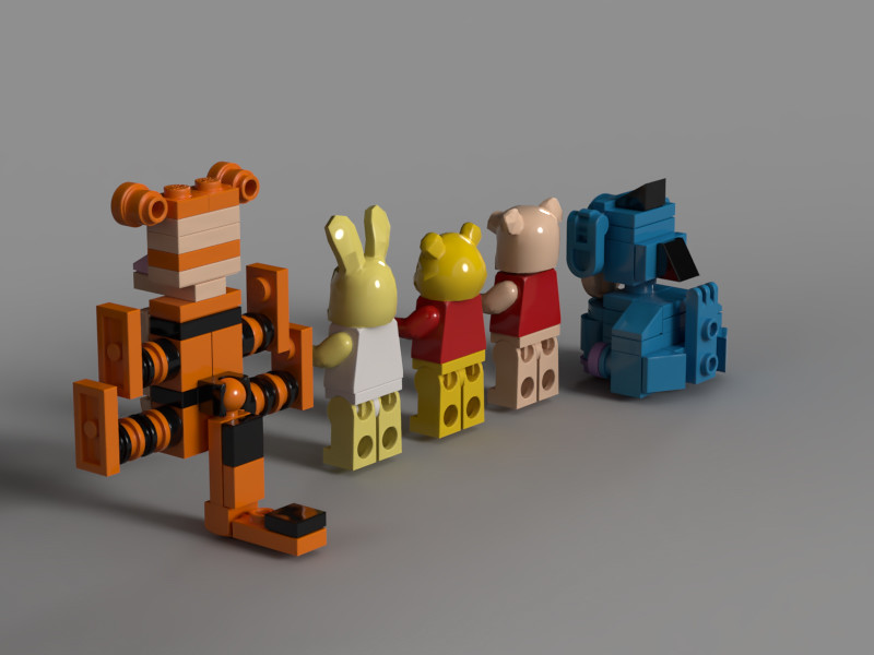屋子周圍做出了大量的花花草草,高度再現傾斜屋設計的屋頂做出容易拆裝的設計,讓玩家可以充分享受小而美的內裝;接著讓我們來看看角色,小熊維尼、小豬、瑞比、貓頭鷹是以現有的零件重塗,而跳跳虎、屹耳則是採用各式零件拼搭而成,屹耳的動作神韻尤其精彩,到時候如果真的推出官方作品,相信在角色的面容會有更加精準、逼真的描繪,實在令人期待呀!