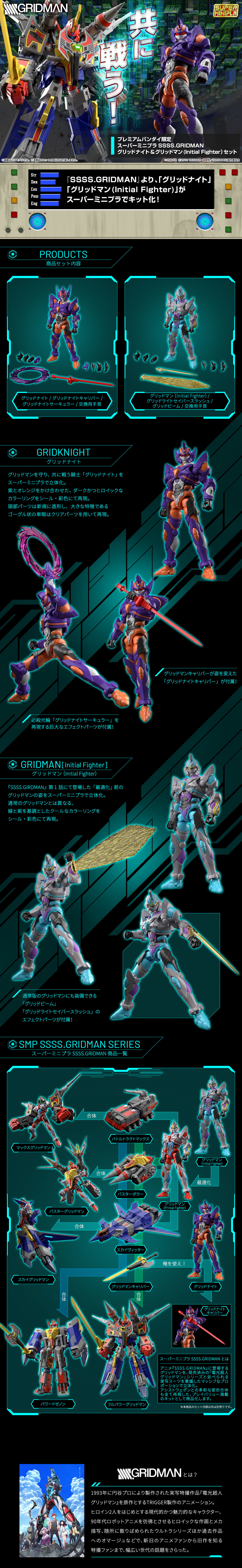 由日本萬代玩具公司食玩事業部 BANDAI CANDY 發行,擁有精密設計的組裝模型食玩「SUPER MINIPLA」系列今(23)日發表了出自人氣動畫《SSSS.GRIDMAN》的最新商品「GRIDKNIGHT & 古立特(Initial Fighter)」預計於 2019 年 09 月發售的消息。