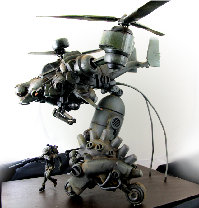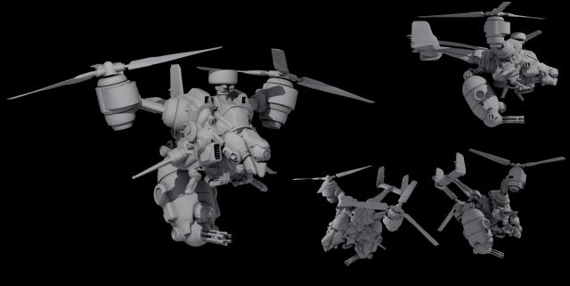 在設計構想上先收集整理現有軍事用直升機結構,例如AH64/MI28/攻殼機動隊等,