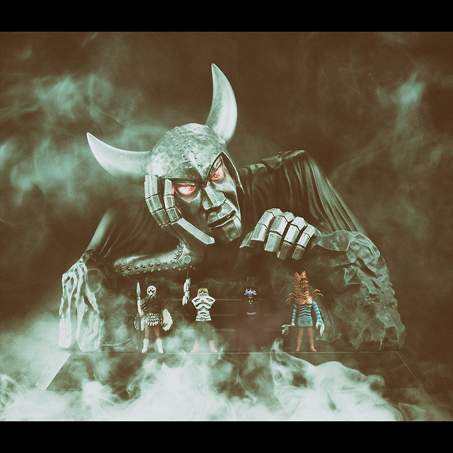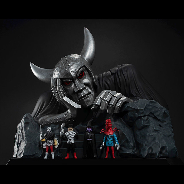 在故事劇中出現的「G.O.D.秘密機關(G.O.D)」是黑暗政府(Goverment of Darkness)的縮寫,其中組織大幹部成員之一「King Dark」這次將推出其造型作品,還附有四個GOD惡人軍團的小角色偶,在眼部還配置有Led燈的發光設計,嘴巴用手指按壓還可以呈現說話張口的模樣,附有兩款不同字樣的展示牌可隨玩具人自己自由選用,喜愛《假面騎士X》系列的玩具人可以參考一下歐!