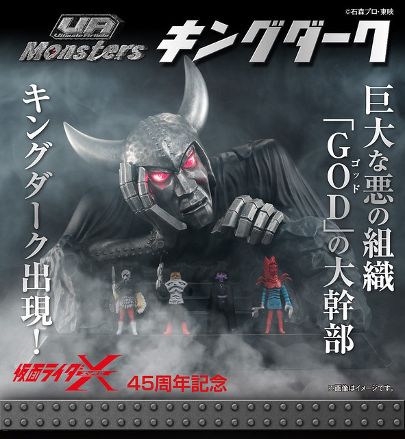 這次將慶祝《假面騎士X》特攝劇集 45週年紀念,知名日廠Megahouse(株式会社メガハウス)玩具公司之前好評的「UA系列(Ultimate Articleシリーズ)」,這次將以嶄新「UA Monsters系列(UA Monstersシリーズ)」來推出《假面騎士X》當中的「King Dark(キングダーク)」!官網近日公開其宣傳照片以及販售相關資訊。