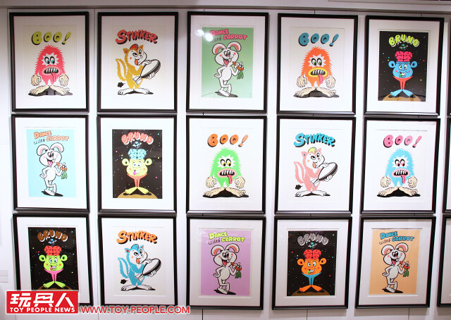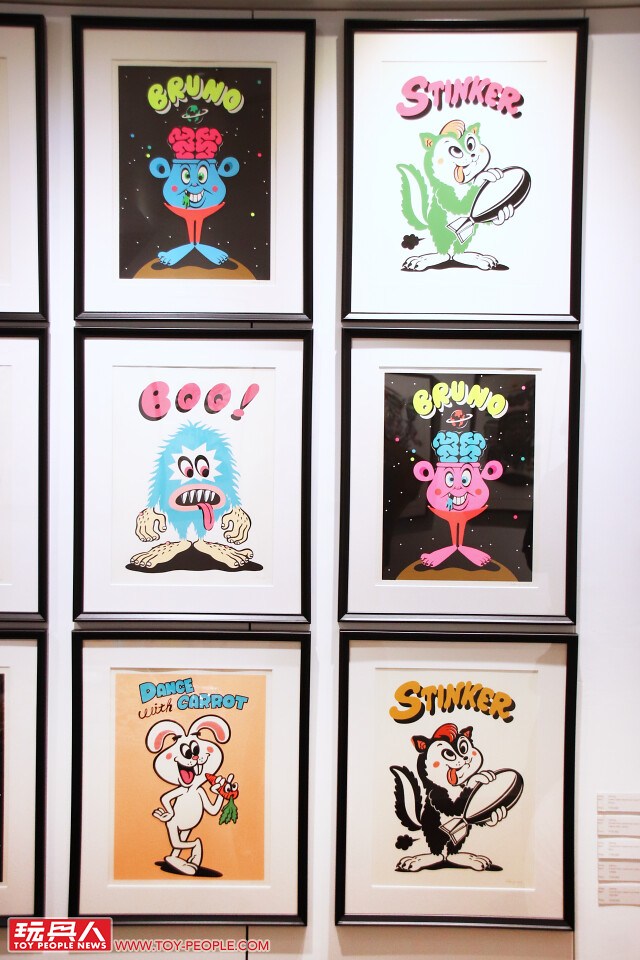這次的展覽中,Jonny 共帶來了三款BRUNO 的立體軟膠作品,各位玩具人也能透過畫作來認識其他Jonny 筆下結合了趣味、獵奇、可愛元素的角色們!像是?RATS、STINKER、Kuro-maru......等等,創作風格十分多變精彩!