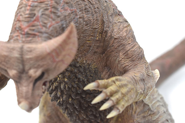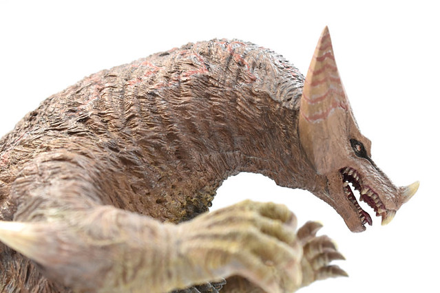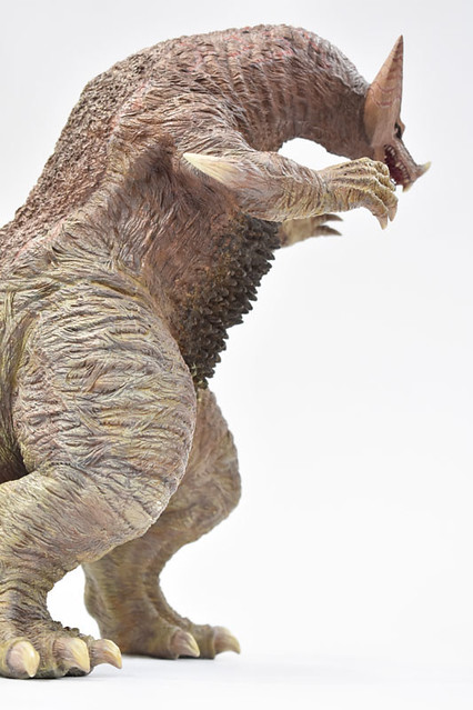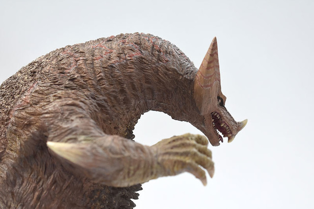 此次作品原型是由「樋口真嗣」(シン・ゴジラ監督)與「前田真宏」(シン・ゴジラデザイン)兩位老師所執行,通過逼真的3D建模來完成真實怪獸的造型設計,作品一樣是以ポリウレタン樹脂(PUR)材質來製作的,"ポリウレタン(polyurethane)樹脂"材質通常是拿來製作GK 雕像作品只要一摔就可能碎裂,但是相對的可以將作品呈現出相當細緻的細節,喜愛《超人力霸王》系列作品的玩具人可以參考一下歐!