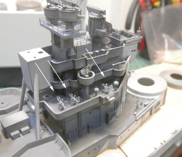 由於使用KA的套改,甲板需要剷除艦載機作業軌道、小艇置架等細節.另外錨機部也需剷除原件的鏈條,導孔的部分也必須鑽開。雖然以錨機部的細節來看也不算是廠商開得不用心,但導孔封死這點也總感覺這裡有種敷衍了事的感覺。