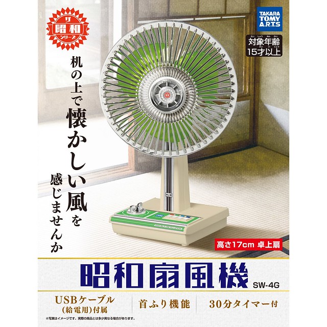 日本知名玩具品牌TAKARATOMY 公司這次將推出一款「昭和電風扇(昭和扇風機)」可使用USB接續電力的小小尺寸電風扇,今年5月1日才開始日本新年號"令和","平成"之前的"昭和"更讓人懷舊其美好的年代,此次的「昭和電風扇」將原本尺寸縮小至17公分高,讓玩具人可以擺在桌上使用,還有2階段的風力可以撥調,喜愛復古懷舊風格作品的玩具人可以參考一下歐!