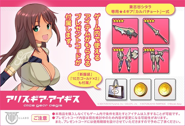 (商品中附上日版《機戰少女Alice》專用序號,可在遊戲中兌換兼志谷星專用★4 GEAR「Karva Chauth」一套、新服袋、10萬金幣×2)