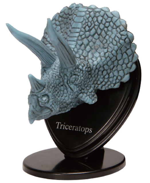 專門推出各式有趣題材轉蛋作品的EPOCH (エポック)品牌,這次將以滅絕的生物"恐龍"為題材來推出「恐龍頭像(恐竜ヘッド)」(名稱暫譯)轉蛋作品,這次每款恐龍頭像都設計有底座可以展示,底座也有各款恐龍的名稱印刷,預計將推出有「霸王龍」、「伶盜龍」、「棘龍」、「三角龍」與「副櫛龍」等等五種不同種類的恐龍,各款再以彩色、冰河期兩種配色呈現,喜愛恐龍題材轉蛋作品的玩具人可以參考一下歐!