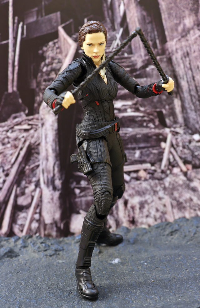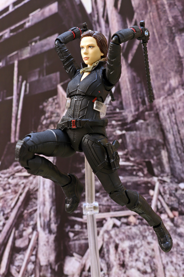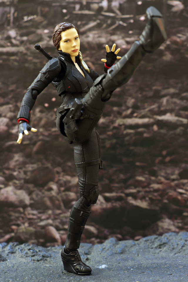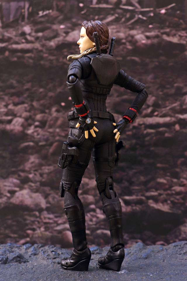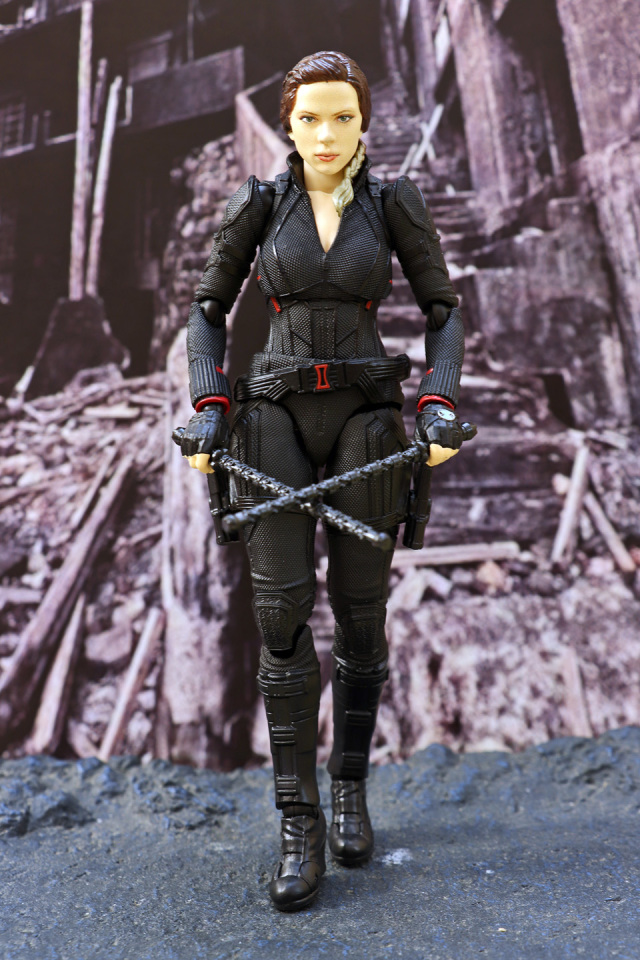 和上一次 AV3 黑寡婦一樣以 3D 移印上色,面相還原度合格!人偶全高約 15 cm,配件有兩款不同表情的頭雕,武器部分附屬兩支短棍握柄,兩支長棍及多款手型及兩支手鎗連鎗套。配件不算太多但夠玩有餘了。外型及線條拿捏不俗,可動方面也十分理想,連單腳站立踢腿也能夠做到;惟頸部可動性及腳踝貼地性方面一般,故單是站著不倒已經花了我不少力氣。不過關節鬆緊度適中,放心玩吧!