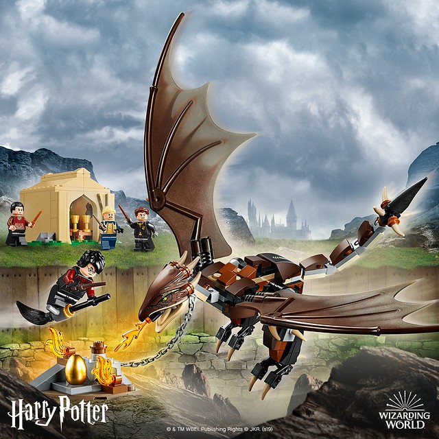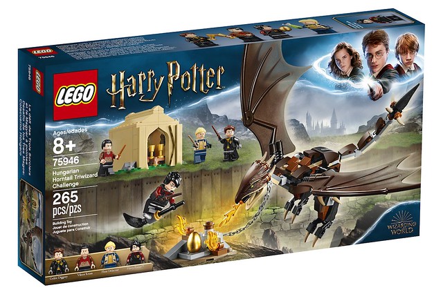 這組匈牙利角尾龍三巫鬥法大賽應該能算是「火盃的考驗」徵兵包吧XD~附屬陽春的鬥士帳棚與放置金蛋的場景,人偶部分包含霍格華茲葛萊分多的哈利、赫夫帕夫的西追·迪哥里(Cedric Diggory)、波巴洞魔法學院的花兒·戴樂古(Fleur Delacour)、德姆蘭學院的維克多·喀浪(Viktor Krum),拼搭形式的匈牙利角尾龍也很帥氣呢!