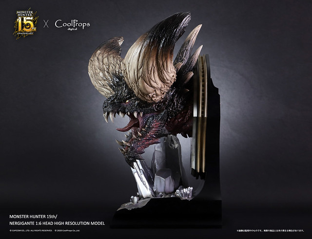 擁有超過千萬片銷售成績,CAPCOM 旗下的超人氣動作遊戲《魔物獵人》系列繼「老山龍巨大軟膠」後,又和日本知名道具複製品製作品牌「CoolProps」合作,推出一款以《魔物獵人世界》(MONSTER HUNTER WORLD)之遊戲封面的看板怪物「滅盡龍」(ネルギガンテ,NERGIGANTE)為主題造型,擁有高度精緻解析度的 1/6 比例頭部雕像,目前已經開放 CoolProps 線上預訂 預計 2021 年春季發售。