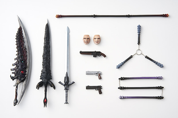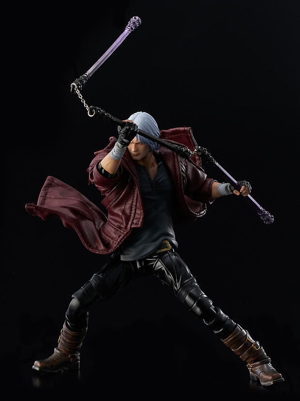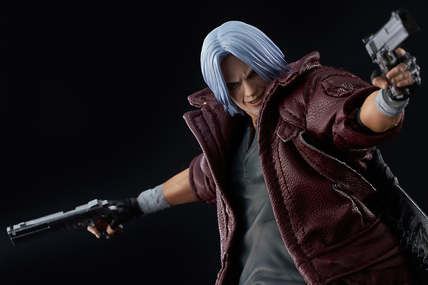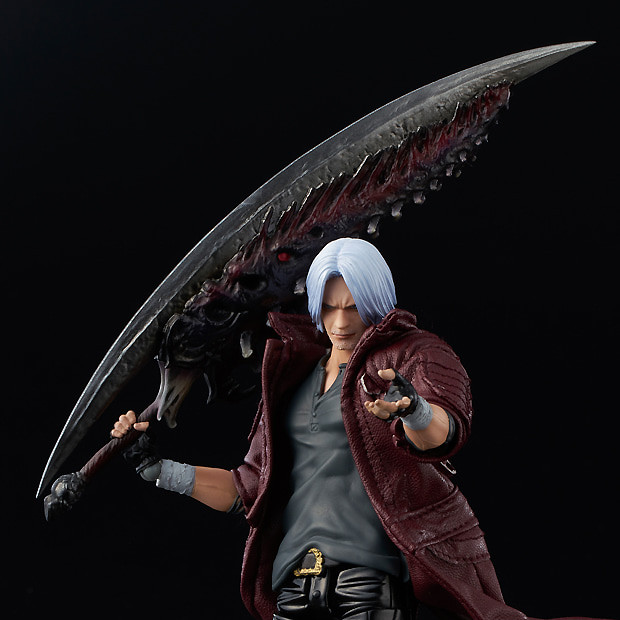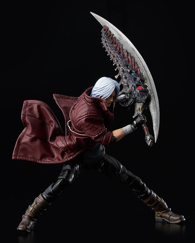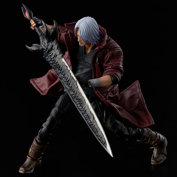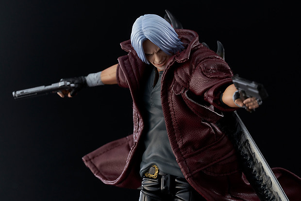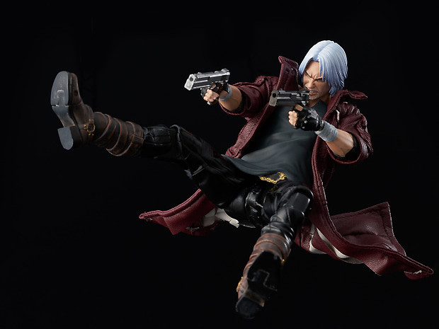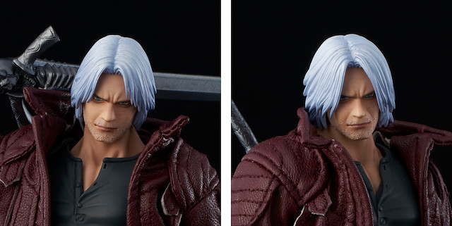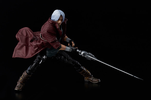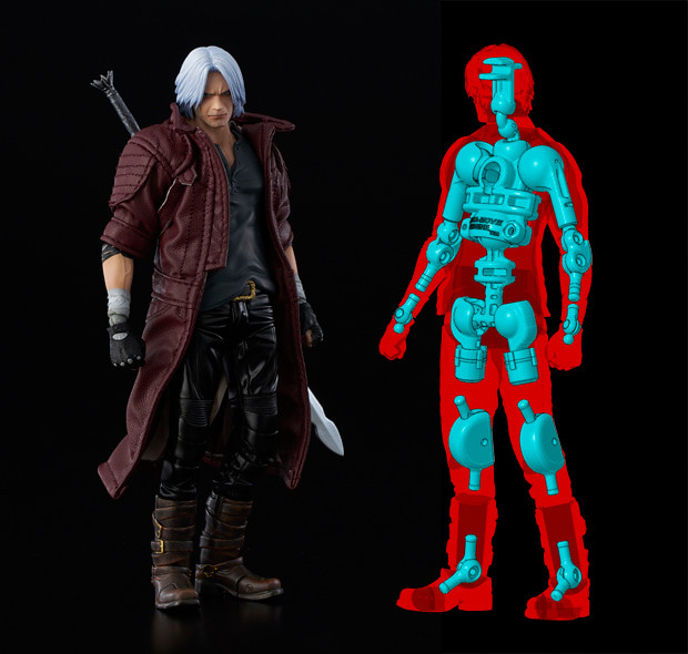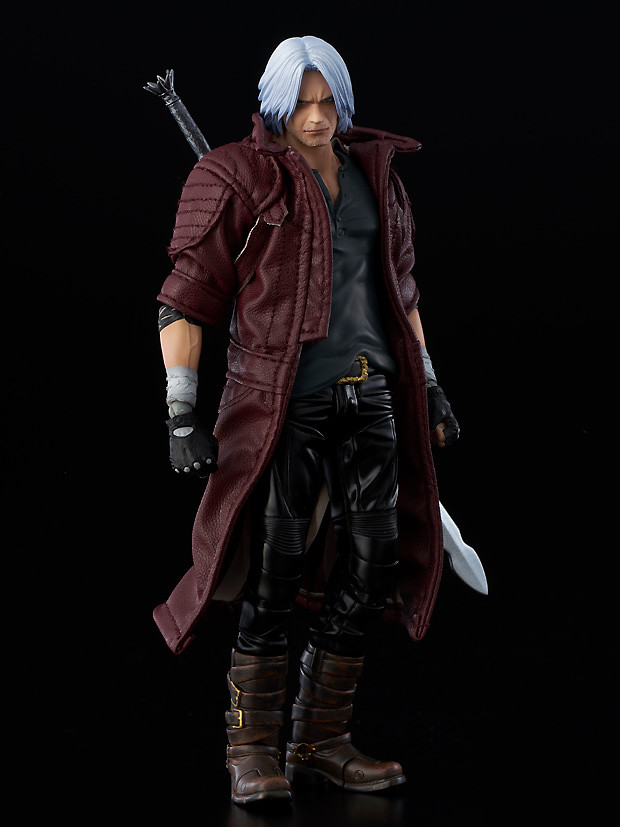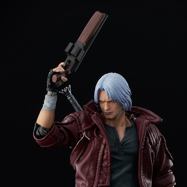 「但丁 1/12 比例可動人偶」但丁本體以 1/12 比例、全高 16 公分尺寸製作,人偶體內藏有完整的可動骨架,再以軟質樹脂製作的外觀造型包覆,不僅全身高度可動,也能保持出色的外型。招牌的紅色大衣則以布料編織而成,內藏鐵線可調整出帥氣擺動線條。一般版收錄了三種表情零件、重現序盤、中期造型的兩種頭髮零件、多種造型手掌,以及叛逆之刃、魔劍但丁、雙槍「象牙&黑檀」、霰彈槍「COYOTE-A」等武器。