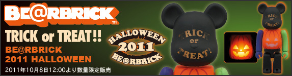 萬聖節又要到了!MEDICOM TOY推出了2011年萬聖節BE@RBRICK,身上採用了萬聖節裡很容易看到的顏色作為配色,而且只要按下頭部,肚子的南瓜燈就會發亮!十足的萬聖節氣氛啊!~售價1,890¥M,高度70mm,預定2011年10月8日發售。