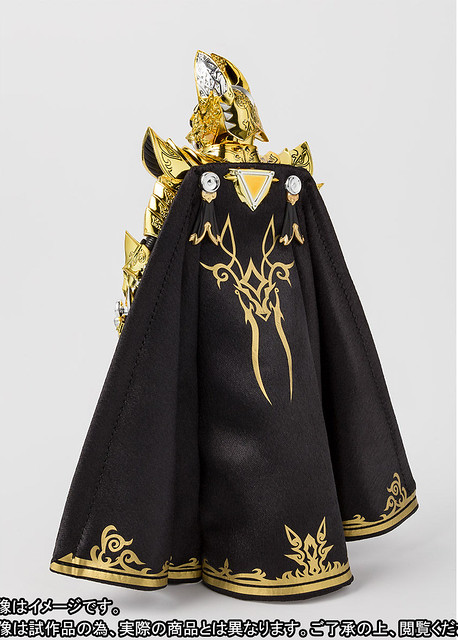 這次將以《牙狼GARO -月虹ノ旅人-》劇場版登場有著"藍色瞳孔的最強騎士"稱號「黃金騎士 牙狼(冴島鋼牙)」來呈現,金色鎧甲上精緻刻線精彩再現,運用不同層次的金色塗裝來表現華麗的騎士鎧甲,作品附有交換用手首左右各3種、交換用頭部配件(紅色瞳孔)可以再現「黃金騎士牙狼(冴島大河)」,還有牙狼劍、牙狼劍鞘、披風(布製)等等配件,此作預計於Premium BANDAI線上商店在2019年05月24日起開始接受訂購,喜歡《牙狼GARO》系列相關作品的玩具人可以參考一下歐!