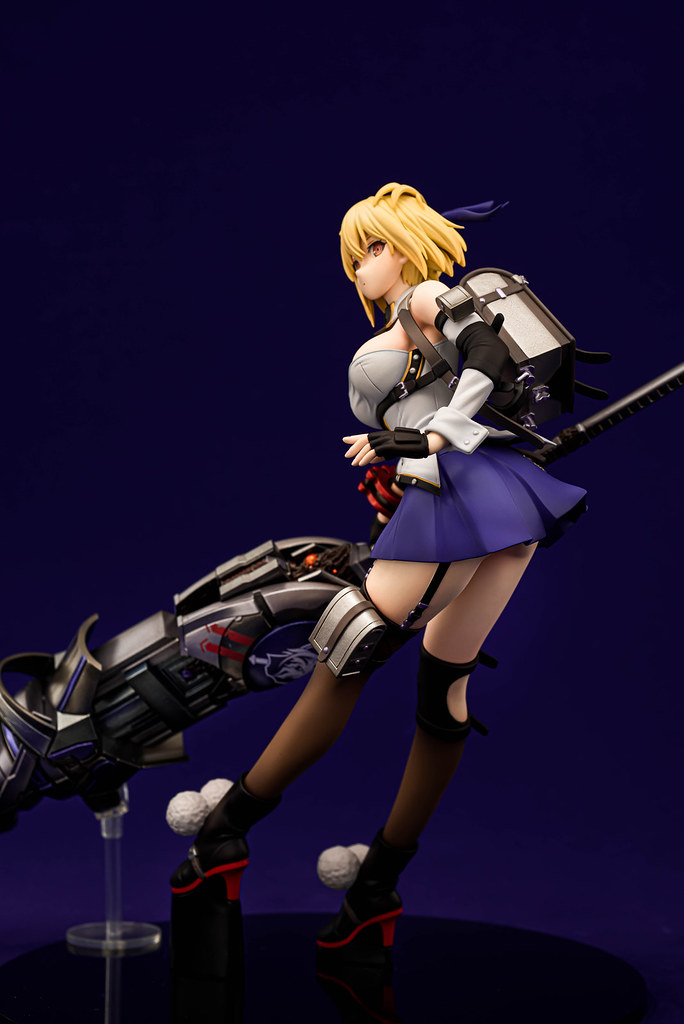 「克蕾雅.維多利亞 1/7比例模型」依據官方立繪造型立體化,重現全身掛滿各式背包的特殊造型,細膩雕塑出躍動的髮束與姿勢、背帶和扣環、手環...等細節,豐滿的胸部及臀部曲線也極為誘人!手中極為巨大的神機則刻畫出情報量緻密的機械構造,並施以厚重的金屬色塗裝表現重量感。可愛的克蕾雅和帥氣的神機,兩種願望一次滿足!