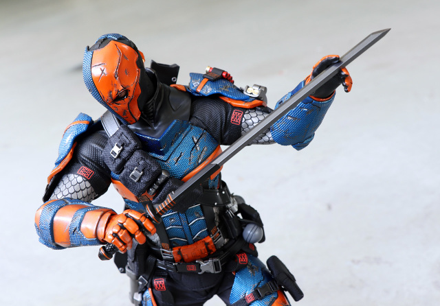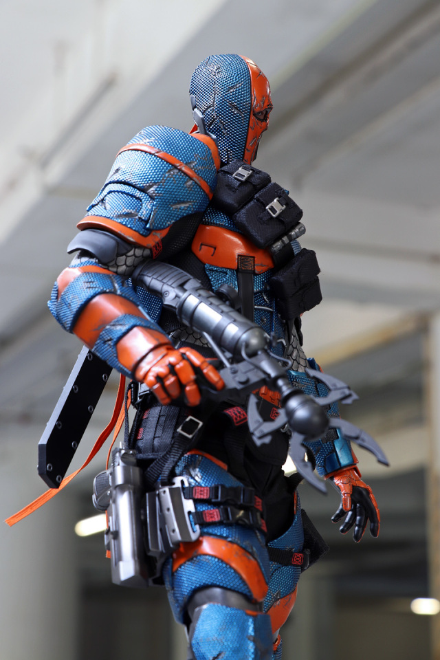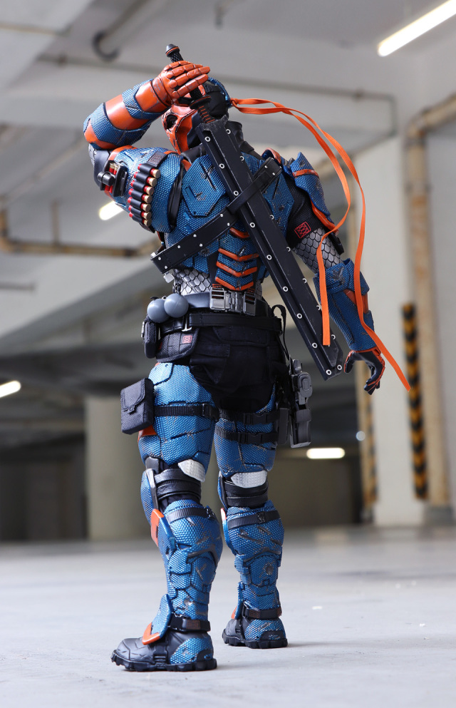 本體高約 32 公分,擁有 30 處可關節,忠實再現了遊戲中的造型。他的可玩性不俗。附件有一堆造型手、可替換的胸甲零件,盔甲、腰帶上也裝備了子彈、手榴彈等武器,還有鉤爪槍、長刀、手槍及能量棍等...... 真的滿有趣!那個 back drop 更是一絕,故可玩性方面是不俗的。QC 很好。當然,他最大賣點必然是其外觀!那健碩的造型非常吸睛。橙、藍相間的外甲施以大量的舊化戰損,這配搭非常好看;長長的頸帶亦十分有型!加上佩掛於身的眾多裝備,使整體擁有相當豐富的視覺效果。所以,外型滿點!