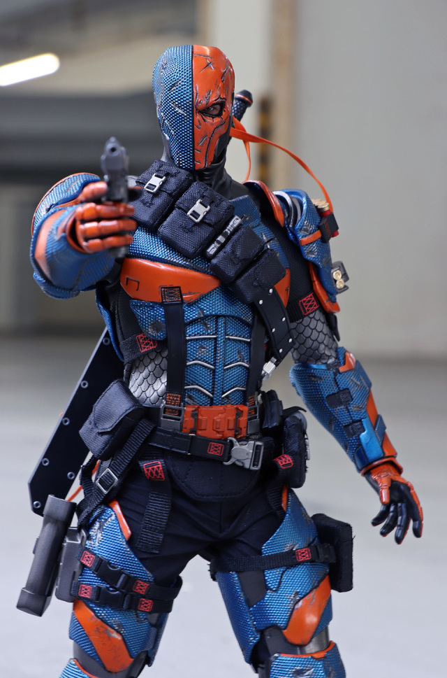 一名叫豺狼(Jackal)的罪犯挾持著史萊德的小兒子喬瑟夫·威爾森(Joseph Wilson)來威脅史萊德透露誰僱用他作為刺客的名單,在史萊德拒絕後攻擊罪犯,不幸的是,喬瑟夫的喉嚨聲帶被傷害。喬瑟夫出院後,妻子認為是史萊德的錯,激動地持槍射傷了他的右眼。失去右眼後開始配戴眼罩,作為傭兵時則會戴上半黑的面具,但他的體能仍不受影響,雖然只剩下左眼但射擊能力與死射不相伯仲。