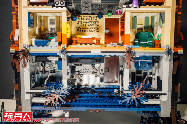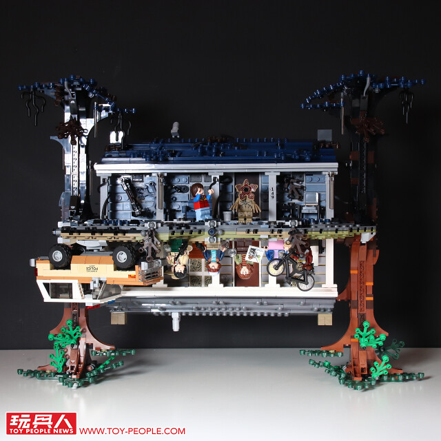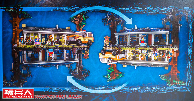 本次的盒組「顛倒世界」可說是從包裝外盒、組裝過程、建築物成品以及人偶各方面都能滿足《怪奇物語》粉絲的一款作品!而對於樂高迷來說,扣住兩個維度空間卡榫零件的運用方式無疑為我們帶來全新的創作靈感~兩邊皆可當正面、特殊的拼搭結構更是讓人想要一翻再翻XD,當然除了上下大致對稱的巧思外,威爾家的細節本身就已經有很不錯的表現了!庭院的椅子、鞦韆、149的房號,以及屋內滿滿的劇中元素,再加上印刷精美、極富角色神韻的樂高人偶,絕對是今年必買的樂高之一!展示時甚至可以印出一張上下擁有不同色調的背景圖來搭配,讓整個作品更有味道。