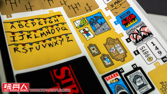 本次的「LEGO 75810 顛倒世界」是以威爾家為主題設計,呈現出兩個空間同時存在的概念,而在各個角落則涵蓋了《怪奇物語》第一、第二季的元素,讓玩家不但能享受堆砌過程,在挖掘內裝樂趣時也可以感受到設計師的用心,雖然有著滿滿的貼紙等著你,但以清楚、漂亮的圖像繪製表現出劇集中出現的圖畫、懸賞單、桌遊、海報......等,貼的時候還可以一邊回味劇情,超讚~