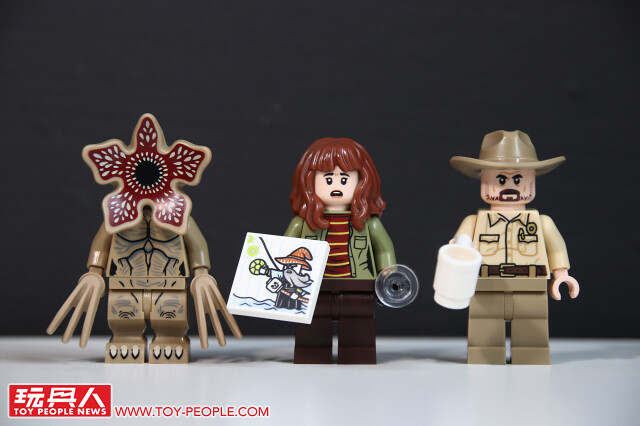 ▼Demogorgon 是以頭套形式的零件來再現頭部展開狀態,而喬絲有著十分貼切的慌張臉跟威爾的魔法師畫配件,哈普則是拿著咖啡杯。