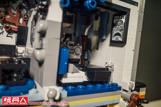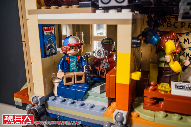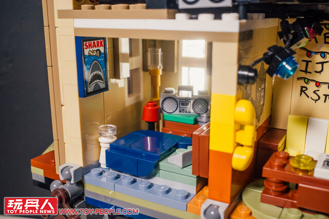 ▼威爾的房間是小編特別喜歡的一處!雖然在電影中是出現經典電影《大白鯊》的海報,但這裡因為版權問題,樂高改以致敬方式來呈現,另外像是床、收音機,以及喬斯放入的許多檯燈也都忠實地還原。