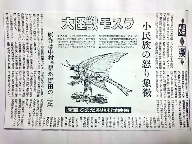 ▼ 於昭和 35 年(1960)年刊載,由阿部和助先生所繪製的《大怪獸摩斯拉》初期設定稿。