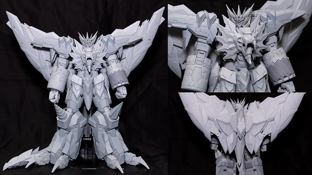 這款「始源我王凱牙」使用PVC、ABS、合金材質製作,由 T-REX 擔任造形設計、宮內利尚擔任商品設計。全機具備巨大而銳利的裝甲造型,細部更有精密的刻線、情報量密度之高,巨大的雙翼、雙足讓這架「最強破壞神」霸氣十足,相當期待後續上色完成的模樣!