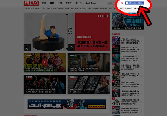 ▼在玩具人網站的右上角點擊「登入」鈕。