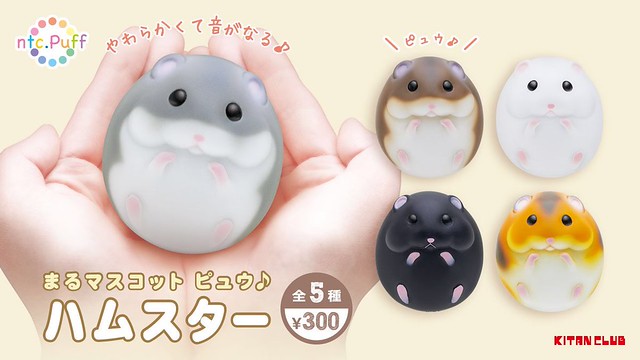 專門推出個是趣味題材的轉蛋廠牌奇譚俱樂部(奇譚クラブ)玩具公司,這個月份將推出一款「ntc.Puff 泡芙倉鼠 唱歌版(ntc.Puff まるマスコット ピュウ♪ ハムスター)」(名稱暫譯),十分暢銷的「ntc.Puff」系列是將動物的可愛造型立體化,並運用軟材質來製作,此次按壓倉鼠的身體還會發出聲音歐!預計將推出約有五種不同花色的倉鼠可以收藏,喜愛動物轉蛋作品的玩具人可以參考一下歐!