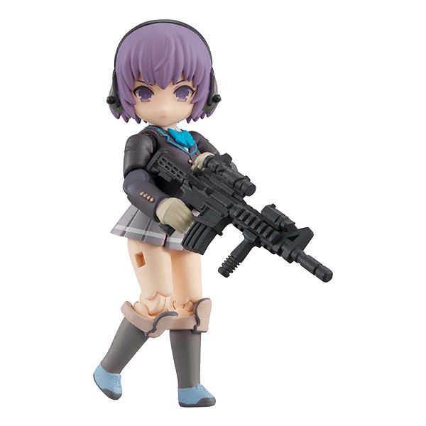 第一彈「Desktop Army LittleArmory」收錄了朝戶未世、椎名六花、來野未明三位角色,透過 Desktop Army 特有的造型與關節立體化,並附上了各自擅長的 M4A1 、MP7 、MG3 等槍械裝備,以及練習用標靶、紙箱等配件,更有能裝備本家 1/12 比例槍械的手掌零件,可玩性更豐富!當然也能與其他 Desktop Army 商品共用武裝,組合出自己專屬的小隊!