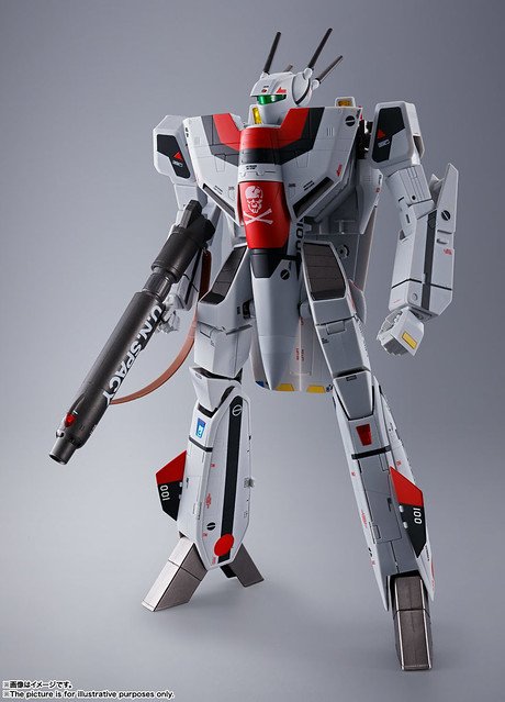 DX超合金系列累積了約36年開發的技術,將劇中可以呈現飛行機體變型成為機械人型態的三段式變型完全再現,另外劇中有著"海盜標誌"的VF-1戰機已經成為了無數動漫粉絲心目中的超時空要塞象徵之一,作品附有交換用角手首左右各3種、武器槍(ガンポッド)一式、専用台座一式等等豐富配件,飛機型態還可看見駕駛員一條輝的迷你人偶,喜愛《超時空要塞》動畫系列的玩具人千萬別錯過了啊!