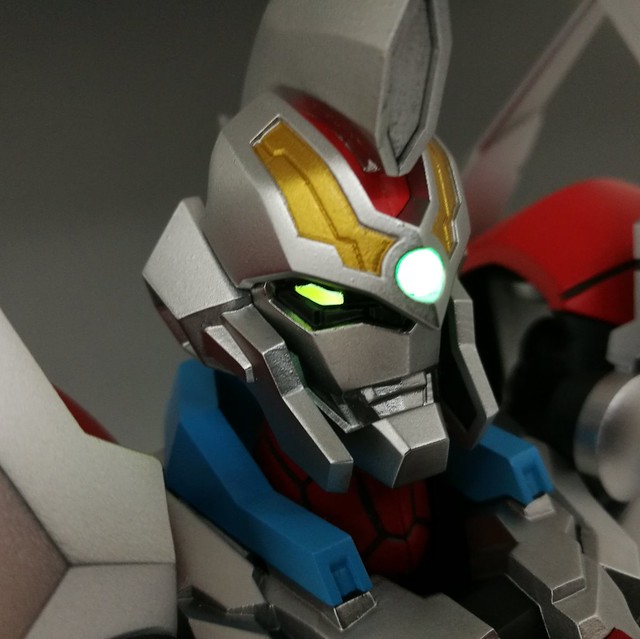 ▼《SSSS.GRIDMAN》「Huge Silhouette 古立特(ヒュージシルエット グリッドマン)」可動完成品上色原型,全高近 30 公分、頭部搭載發光機構