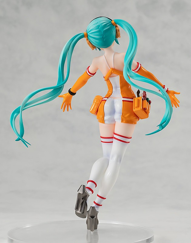 「POP UP PARADE RACING MIKU 2010 Ver.」將 2010 年由繪師 redjuice 繪製、以技師為主題可愛造型,飄揚的雙馬尾與躍動的造型,配合她開朗的笑容更讓作品充滿活力,服裝部份透過不同的光澤度呈現各部位的質感差異,腰包上的工具組、布料拼接處的縫線等細節也相當精緻。