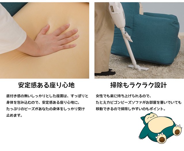 這款 CELLUTANE 推出的「卡比獸造型沙發組」使用卡比獸的造型製作成質地相當柔軟的沙發,長時間坐著也不會感受太大的壓力,能舒適地在在卡比獸的肚皮上放鬆,椅背也讓你毫無負擔,搭配精靈球造型的椅凳就能整個人躺下去。表面質感滑順輕柔,不小心弄髒的話還能卸下沙發套清潔。雖然卡比獸給人很沉重的視覺效果,但整個沙發其實非常輕盈,成年女性也能輕易移動整理下方。