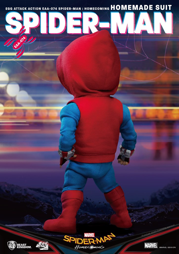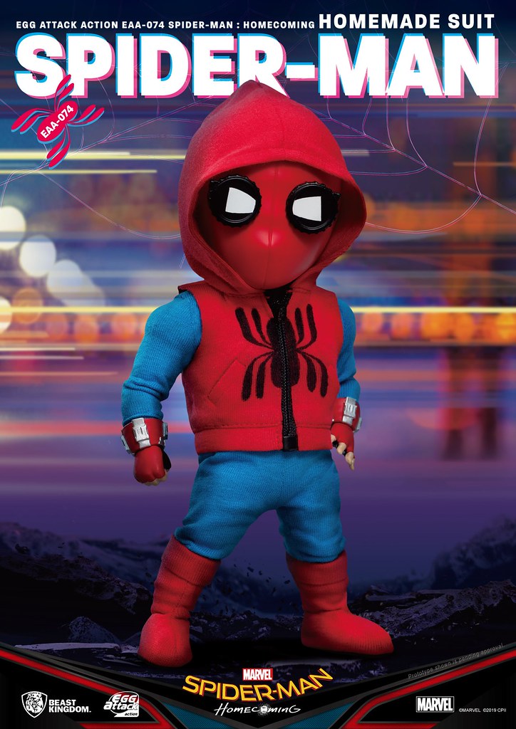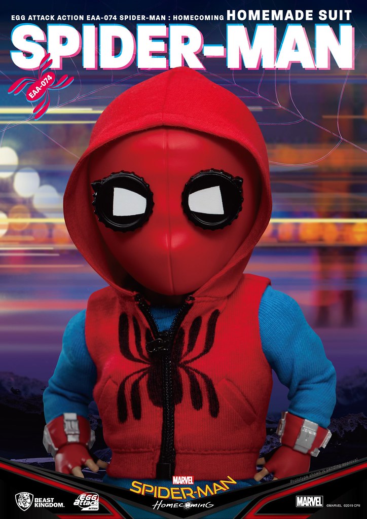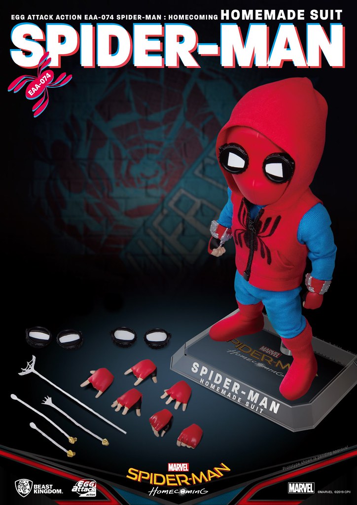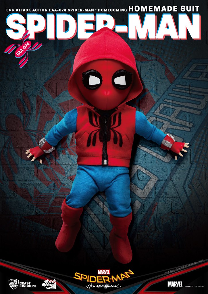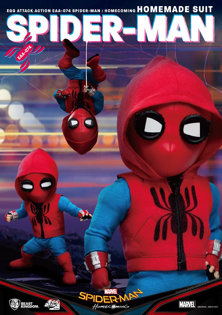 在推出「EAA-051 蜘蛛人」之後過了許久,由台灣玩具品牌野獸國(Beast Kingdom)發行,以獨特Q 版造型、高度可動性為賣點的「Egg Attack Action(EAA)」系列於昨(18)日再度發表來自《蜘蛛人:返校日》的新作「蜘蛛人 自製戰衣」(Spider-Man Homemade Suit),預計將於2019年第四季發貨!!