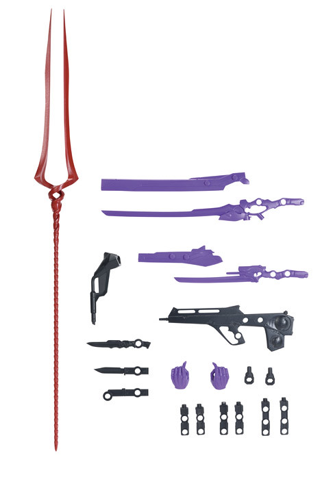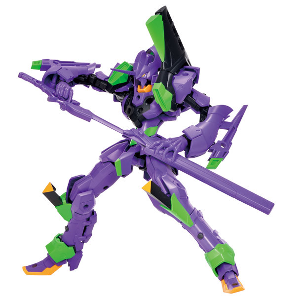「EVA PRIME(初號機ver.)」由紫、黑、青綠、紅四色成形,簡單組裝便有高完成度,配件中附有電磁步槍、高振動粒子刀、朗基努斯之槍、MAGOROKU(孫六)、反擊刃、武裝懸架用連接零件等,單體即能把玩出帥氣動作,還可以透過統一規格 4mm 接點擴充 NEXATE 系列武裝、與 VLOCKer's 其他系列機體、機娘連動!