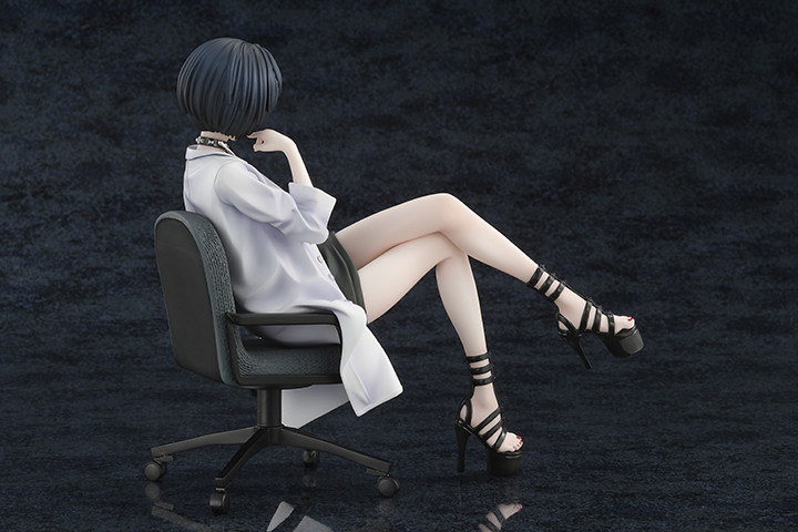 「武見妙 1/7比例模型」以她平時穿上白大褂、在診所內看診的場景為基礎製作,露出冷豔的微笑翹腿在電腦椅上,精巧地雕塑出證件、飾品、電腦椅的網布結構等細節,並細膩塗裝出白皙的修長雙腿、紅色指甲油,展現出美豔動人的形象。此外白大褂為可脫式設計,脫下後就能看見妙一襲性感的黑色無袖連衣裙,讓她的成熟魅力更為散發!