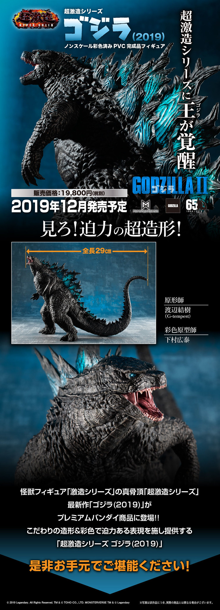 由日本 Art Spirits 公司(株式会社アートスピリッツ)推出的『超激造系列』怪獸模型繼繼哥吉拉(2016)、哥吉拉(2016)覺醒Ver.、哥吉拉(2016)第二形態、蓋鋼(2004)後,再度發表了出自《哥吉拉2:怪獸之王》的最新商品「哥吉拉(2019)」預計於 2019 年 12 月發售的消息。