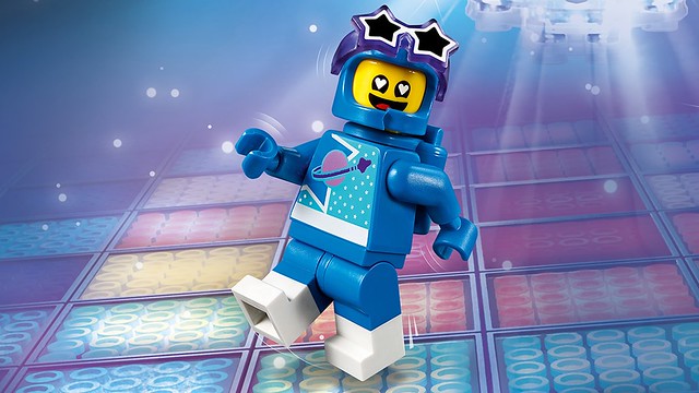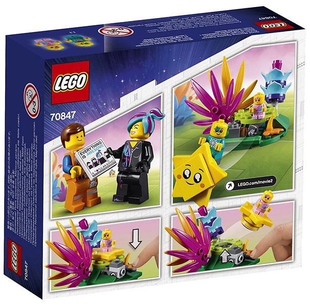 首先看到的是以可愛人偶陣容吸引你的小巧盒組,只有50 片零件,會得到有著咪咪眼的超可愛Emmet、頭髮恢復成原本繽紛顏色的Lucy (Wyldstyle),以及兩位令人融化的Disco babies!藉著藏有機關的小場景,可以把小嬰兒跟星星一起彈飛XD~