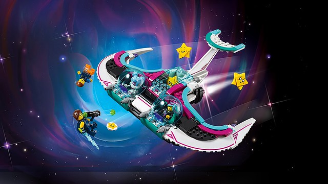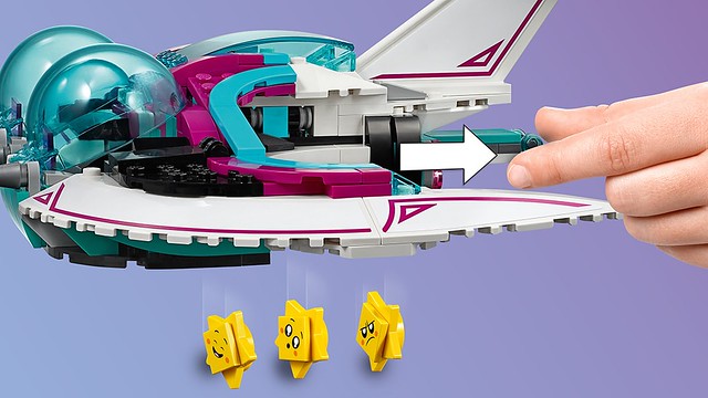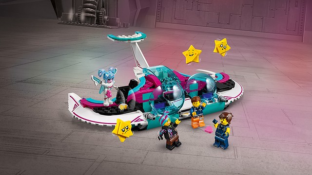 最後則是Lucy 跟Sweet Mayhem 的雙人戰鬥機,除了兩個載人駕駛座外,後方還有一顆兇狠的星星啊XD!戰鬥機本體造型頗具未來感,加上繽紛的顏色搭配辨識度極高,並搭載了簡單的彈射機關,除此之外還附上了Emmet 跟雷斯丹傑維特(Rex Dangervest) 人偶喔。