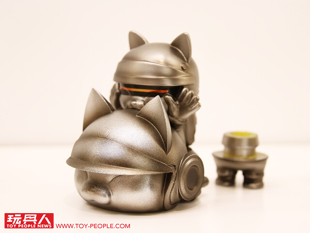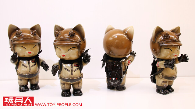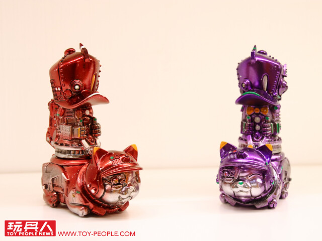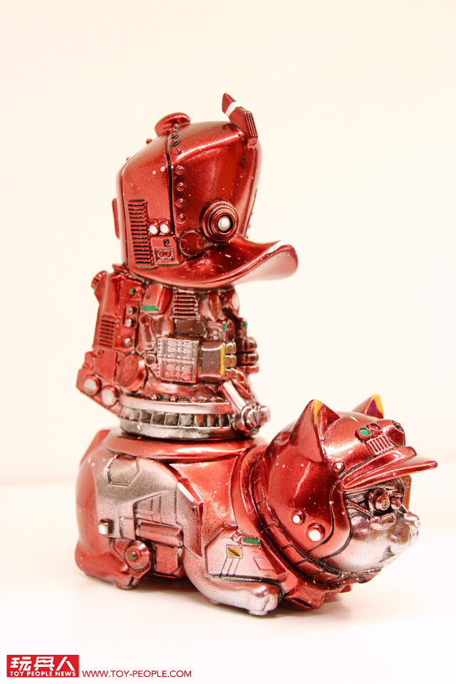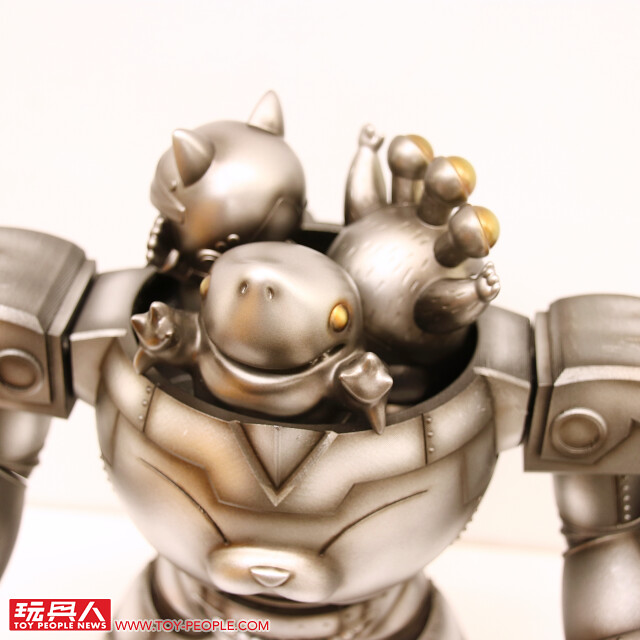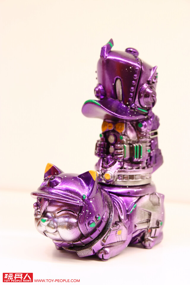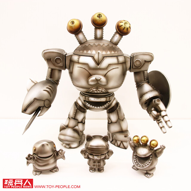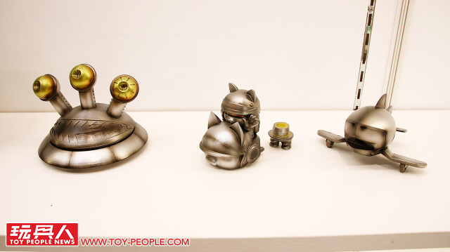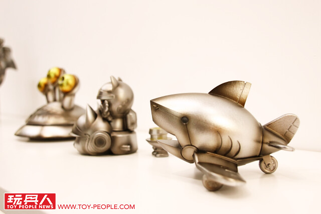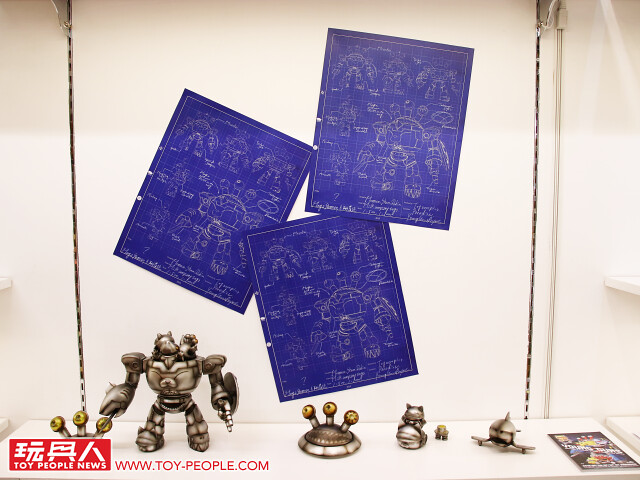 藉著自己的作品,傳達出對於流行文化的熱愛,或者可以更白話、活潑地說,這次的展覽就是三位懷抱熱情的大男孩展現出內心「中二魂」的最佳舞台!本次展覽最大亮點無疑是結合三位設計師心血、聯合了香港Toy0+ 推出的「機神大統領-毛翔羅號」了!看了這麽久的官圖,今天小編終於在現場看到實體啦!除了超魄力尺寸之外,機器人的各部位還可以分離,並跟「鋼鐵三寶」進行連動!極具巧思又硬派熱血的設計,實在超好玩~