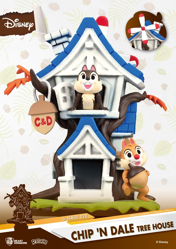 首先就是淘氣的奇奇蒂蒂跟他們溫馨的樹屋,從二樓窗外探出頭的奇奇跟拿著松果的蒂蒂實在有夠Q~胸口、臉頰的蓬鬆毛也都重現了!而樹屋的屋頂上有著小煙囪與螺旋槳,還有用紅字寫著「C&D」的松果門牌啊。